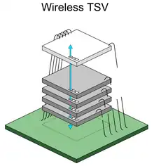 The possible way to increasing the performance of data transfer in the Chip stack is use Wireless Networks on Chip (WiNoC).[11]