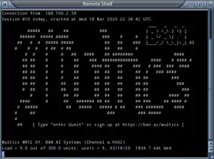 ![]() Login screen for the BAN.AI public Multics server. | |