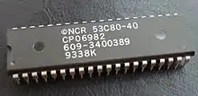 The NCR 5380 is an early SCSI controller chip developed by NCR Microelectronics. It was popular due to its simplicity and low cost. The 5380 was used in the Macintosh Plus and in numerous SCSI cards for personal computers, including the Amiga and Atari TT. The 5380 was second sourced by several chip makers, including AMD and Zilog. The 5380 was designed by engineers at the NCR plant then located in Wichita, Kansas, and initially fabricated by NCR Microelectronics in Colorado Springs, Colorado. It was the first single-chip implementation of the SCSI-1 protocol.