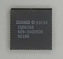 The NCR 53C9x is a family of application-specific integrated circuits (ASIC) produced by the former NCR Corporation and others for implementing the SCSI (small computer standard interface) bus protocol in hardware and relieving the host system of the work required to sequence the SCSI bus. The 53C9x was a low-cost solution and was therefore widely adopted by OEMs in various motherboard and peripheral device designs. The original 53C90 lacked direct memory access (DMA) capability, an omission that was addressed in the 53C90A and subsequent versions.