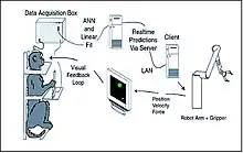 Research on brain–computer interface began in the 1970s at the University of California, Los Angeles under a grant from the National Science Foundation, followed by a contract from DARPA.[17][18] The papers published after this research also mark the first appearance of the expression brain–computer interface in scientific literature. Recently, studies in Human-computer interaction through the application of machine learning with statistical temporal features extracted from the frontal lobe, EEG brainwave data has shown high levels of success in classifying mental states (Relaxed, Neutral, Concentrating) mental emotional states (Negative, Neutral, Positive)[19] and thalamocortical dysrhythmia.[20]