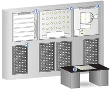 The player would sit at the stand and press the buttons to make their moves, while one panel of lights showed the state of the game, and another showed the computer's calculations during its move.[3] The computer could be set to make its calculations at various speeds, slowing down so that the demonstrator could describe exactly what the computer was doing in real time.[5] A visual guide attached to the Nimrod explained what the computer was doing during its turn, as well as showing possible game states and how they would be represented by the lights.[3] Signs stating which player's turn it was and whether one or the other had won would light up as appropriate during gameplay.[5]