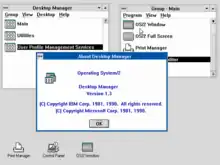 The promised user interface, Presentation Manager, was introduced with OS/2 1.1 in October 1988.[15] It had a similar user interface to Windows 2.1, which was released in May of that year. (The interface was replaced in versions 1.2 and 1.3 by a look closer in appearance to Windows 3.0.)