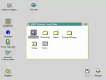 ![]() OS/2 Warp 4 desktop. This version was released on 25 September 1996.[1] | |