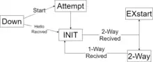 - Attempt: The attempt state is similar to the down state, except that a router is in the process of efforts to establish a conversation with another router, but is only used on non-broadcast multiple-access networks (NBMAs).