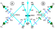 The simplest one is the subset sum problem.[14] An optical device solving an instance with four numbers {a1, a2, a3, a4} is depicted below: