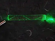 Daniel Colladon and Jacques Babinet first demonstrated the guiding of light by refraction, the principle that makes fiber optics possible, in Paris in the early 1840s.[14] John Tyndall included a demonstration of it in his public lectures in London, 12 years later.[15] Tyndall also wrote about the property of total internal reflection in an introductory book about the nature of light in 1870:[16][17]