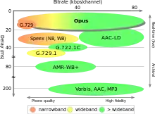 Opus is a lossy audio coding format developed by the Xiph.Org Foundation and standardized by the Internet Engineering Task Force, designed to efficiently code speech and general audio in a single format, while remaining low-latency enough for real-time interactive communication and low-complexity enough for low-end embedded processors.[4][5] Opus replaces both Vorbis and Speex for new applications, and several blind listening tests have ranked it higher-quality than any other standard audio format at any given bitrate until transparency is reached, including MP3, AAC, and HE-AAC.[6][7]