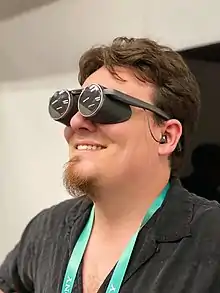 In 2014, Luckey was described as "the face of virtual reality in gaming"[7] and a celebrity among virtual reality enthusiasts; however, he does not consider himself to be a celebrity.[48] He maintains a casual appearance, is frequently barefoot, and prefers sandals to shoes even at trade shows and events.[8][9]