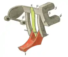The sautoir is the centerpiece of the pascaline's carry mechanism. In his "Avis nécessaire...", Pascal noted that a machine with 10,000 wheels would work as well as a machine with two wheels because each wheel is independent of the other. When it is time to propagate a carry, the sautoir, under the sole influence of gravity,[16] is thrown toward the next wheel without any contact between the wheels. During its free fall the sautoir behaves like an acrobat jumping from one trapeze to the next without the trapezes touching each other ("sautoir" comes from the French verb sauter, which means to jump). All the wheels (including gears and sautoir) have therefore the same size and weight independently of the capacity of the machine.