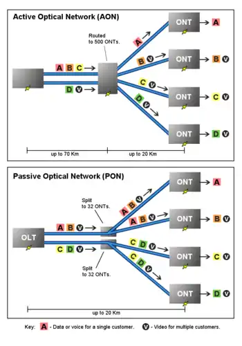 Media related to Passive optical network at Wikimedia Commons- How Fiber-to-the-home Broadband Works, including an explanation of Active Optical Networks (AON), at Howstuffworks.com.