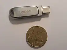 SanDisk 1 TB USB-C flash drive (2020 model) next to a 50 cent euro coin