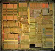 The Pentium OverDrive is a heavily modified, 3.3 volt Pentium P54 core manufactured on 0.6 micrometer technology. It is fitted with a 486-compatible bus unit (though with an increased pin-count), an integrated heatsink and fan, and 32 kB of level 1 cache, double the 16 kB offered on regular P54C chips.[1] As the data bus was effectively reduced to 32-bit width, per-clock performance was much lower than that of a 'regular' Pentium, though still substantially faster compared to a similarly clocked 486 owing to the Pentium's architectural improvements, such as the much improved FPU. It was also equipped with an integrated 3.3 volt power regulator as many 486 motherboards only provided 5 volt power.