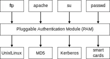 A pluggable authentication module (PAM) is a mechanism to integrate multiple low-level authentication schemes into a high-level application programming interface (API). PAM allows programs that rely on authentication to be written independently of the underlying authentication scheme. It was first proposed by Sun Microsystems in an Open Software Foundation Request for Comments (RFC) 86.0 dated October 1995. It was adopted as the authentication framework of the Common Desktop Environment. As a stand-alone open-source infrastructure, PAM first appeared in Red Hat Linux 3.0.4 in August 1996 in the Linux PAM project. PAM is currently supported in the AIX operating system, DragonFly BSD,[1] FreeBSD, HP-UX, Linux, macOS, NetBSD and Solaris.