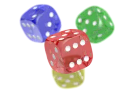 A PNG image of four differently colored dice with an 8-bit transparency channel, overlaid onto a checkered background, typically used in graphics software to indicate transparency | |