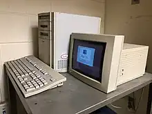 The Power Macintosh 8100 (also sold in Japan as the Power Macintosh 8115 and with bundled server software as the Workgroup Server 8150) is a personal computer that is a part of Apple Computer's Power Macintosh series of Macintosh computers. It was introduced in March 1994 alongside the Power Macintosh 6100 and the 7100 as the high end model of the first generation of the Power Macintosh family, and is a direct replacement of the prior Macintosh Quadra 800. It retains the Quadra 800's enclosure.