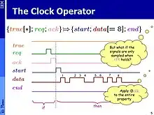 - Eisner, Cindy; Fisman, Dana; Havlicek, John; McIsaac, Anthony; Van Campenhout, David (2003). "The Definition of a Temporal Clock Operator" (PDF). Automata, Languages and Programming. Lecture Notes in Computer Science. Vol. 2719. p. 857. doi:10.1007/3-540-45061-0_67. ISBN 978-3-540-40493-4.