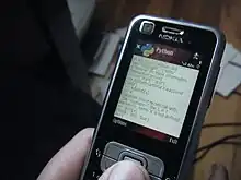 Python for S60, also called PyS60—a term reminiscent of the Unix naming convention—is a port of the Python programming language developed by Nokia for its S60 software platform, originally based on Python 2.2.2 from 2002.[1] The final version, PyS60-2.0.0, was released on 11 February 2010. It came with multiple improvements, the most notable of which was an update to a new core based off of Python 2.5.4.[2]
