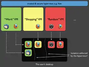 Qubes OS is a security-focused desktop operating system that aims to provide security through isolation.[7] Isolation is provided through the use of virtualization technology. This allows the segmentation of applications into secure virtual machines called qubes. Virtualization services in Qubes OS are provided by the Xen hypervisor.