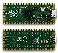 The Raspberry Pi Pico uses the RP2040,[66] a microcontroller containing dual ARM Cortex-M0+ cores running at 133 MHz, 6 banks of SRAM totalling 264 KB, and programmable IO for peripherals.[67]