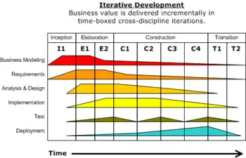 The rational unified process (RUP) is an iterative software development process framework created by the Rational Software Corporation, a division of IBM since 2003.[1] RUP is not a single concrete prescriptive process, but rather an adaptable process framework, intended to be tailored by the development organizations and software project teams that will select the elements of the process that are appropriate for their needs. RUP is a specific implementation of the Unified Process.