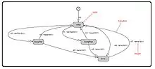 State machines in ROOM also have a graphical notation similar to the UML state charts. An example is shown in the diagram in this section.
