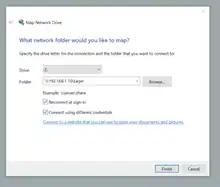 Map Network Drive dialog in Windows 10, connecting to a local SMB network drive