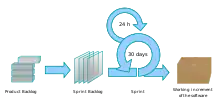 A sprint (also known as an iteration, timebox or design sprint) is a fixed period of time wherein team members work on a specific goal. Each sprint is normally between one week and one month, with two weeks being the most common.[3] Usually, daily meetings are held to discuss the progress of the project undertaken as well as difficulties faced by team members. The outcome of the sprint is a functional deliverable, or a product which has received some development in increments.
