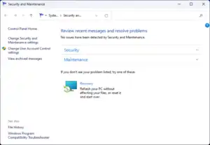 Security and Maintenance consists of three major components: A control panel applet, a Windows service and an application programming interface (API) provided by Windows Management Instrumentation (WMI).