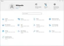 The second generation of the app, called "Settings" has been included with all releases of Windows 10 (including Windows 10 Mobile edition),[5][6] as well as Windows Server 2016, 2019 and 2022. It includes more options that were previously exclusive to the desktop Control Panel. Windows Update, which belonged to the Control Panel prior to Windows 10, now exclusively belong to Settings. The latest version contains the following categories: