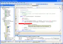 SharpDevelop (also styled as #develop) is a discontinued[1] free and open source integrated development environment (IDE)[2][3] for the .NET Framework,[4] Mono,[5] Gtk#[5] and Glade# platforms.[6] It supports development in C#,[7] Visual Basic .NET,[8][9] Boo, F#,[10] IronPython and IronRuby programming languages.[11]