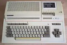 From the first Z80 processor-based model to the MZ-2200 in 1983, the MZ computers included the PC, monitor, keyboard, and tape-based recorder in a single unit, similar to Commodore's PET series. It was also notable for not including a programming language or operating system in ROM. This invited a host of third-party companies, starting with Hudson Soft, to produce many languages and OSes for the system. In an era when floppy disk drives were too expensive for most home users, the MZ's built-in cassette tape drive was faster and more reliable than the cassette storage on some competing computers;[2] however, this meant that the MZ series was relatively slow to adopt floppy drives as a standard accessory.