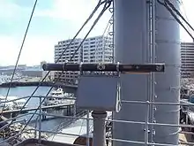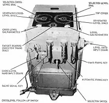 The Mark 33 GFCS was a power-driven fire control director, less advanced than the Mark 37. The Mark 33 GFCS used a Mark 10 Rangekeeper, analog fire-control computer. The entire rangekeeper was mounted in an open director rather than in a separate plotting room as in the RN HACS, or the later Mark 37 GFCS, and this made it difficult to upgrade the Mark 33 GFCS.[19] It could compute firing solutions for targets moving at up to 320 knots, or 400 knots in a dive. Its installations started in the late 1930s on destroyers, cruisers and aircraft carriers with two Mark 33 directors mounted fore and aft of the island. They had no fire-control radar initially, and were aimed only by sight. After 1942, some of these directors were enclosed and had a Mark 4 fire-control radar added to the roof of the director, while others had a Mark 4 radar added over the open director. With the Mark 4 large aircraft at up to 40,000 yards could be targeted. It had less range against low-flying aircraft, and large surface ships had to be within 30,000 yards. With radar, targets could be seen and hit accurately at night, and through weather.[20] The Mark 33 and 37 systems used tachymetric target motion prediction.[19] The USN never considered the Mark 33 to be a satisfactory system, but wartime production problems, and the added weight and space requirements of the Mark 37 precluded phasing out the Mark 33:
