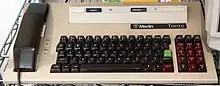 The result of a three-year collaboration between Sinclair Research, ICL and British Telecom, the One Per Desk adds a telephone handset at one end of the keyboard, and rudimentary Computer-Telephony Integration (CTI) software.[26] This machine interested a number of high-profile business customers, including certain divisions of the former UK Customs and Excise Department, but its success was generally limited. In the late 1980s they were used in bingo halls to allow a country-wide networked bingo game.[27]