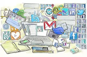 Each social networking user is able to create a community that centers around a personal identity they choose to create online.[67] In his book Digital Identities: Creating and Communicating the Online Self,[68] Rob Cover argues that social networking's foundation in Web 2.0, high-speed networking shifts online representation to one which is both visual and relational to other people, complexifying the identity process for younger people and creating new forms of anxiety.[68] In 2016, news reports stated that excessive usage of SNS sites may be associated with an increase in the rates of depression, to almost triple the rate for non-SNS users. Experts worldwide have said that 2030 people who use SNS more have higher levels of depression than those who use SNS less.[69] At least one study went as far as to conclude that the negative effects of Facebook usage are equal to or greater than the positive effects of face-to-face interactions.[70]