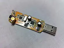 Eric Fry discovered that some common low-cost DVB-T USB dongles with the Realtek RTL2832U[26][27] controller and tuner, e.g. the Elonics E4000 or the Rafael Micro R820T,[28] can be used as a wide-band (3 MHz) SDR receiver. Experiments proved the capability of this setup to analyze Perseids meteor shower using Graves radar signals.[29] This project is being maintained at Osmocom.