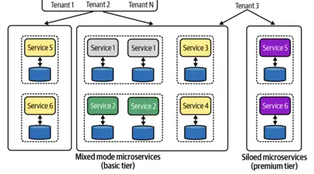 Some SaaS products do not share any resources between tenants—called siloing. Although this negates many of the efficiency benefits of SaaS, it makes it easier to migrate legacy software to SaaS[64] and is sometimes offered as a premium offering at a higher price.[65] Pooling all resources might make it possible to achieve higher efficiency,[66] but an outage affects all customers so availability must be prioritized to a greater extent.[67] Many systems use a combination of both approaches, pooling some resources and siloing others.[68] Other companies group multiple tenants into pods and share resources between them.[69]