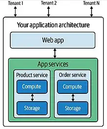 The structure of a typical SaaS application can be separated into application and control planes.[56] SaaS products differ in how these planes are separated, which might be closely integrated or loosely coupled in an event- or message-driven model.[57] The control plane is in charge of directing the system and covers functionality such as tenant onboarding, billing, and metrics, as well as the system used by the SaaS provider to configure, manage, and operate the service.[56] Many SaaS products are offered at different levels of service for different prices, called tiering. This can also affect the architecture for both planes, although it is commonly placed in the control plane.[58] Unlike the application plane, the services in the control plane are not designed for multitenancy.[59]