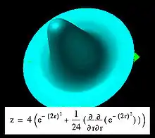 One might consider a Gaussian plus enough of its second derivative to flatten the top (in the frequency domain) or sharpen it up (in the spatial domain), as shown. Functions based on the Gaussian function are natural choices, because convolution with a Gaussian gives another Gaussian whether applied to x and y or to the radius. Similarly to wavelets, another of its properties is that it is halfway between being localized in the configuration (x and y) and in the spectral (j and k) representation. As an interpolation function, a Gaussian alone seems too spread out to preserve the maximum possible detail, and thus the second derivative is added.
