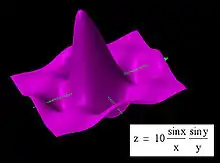 The previous discussion assumes that the rectangular mesh sampling is the dominant part of the problem. The filter usually considered optimal is not rotationally symmetrical, as shown in this first figure; this is because the data is sampled on a square lattice, not using a continuous image. This sampling pattern is the justification for doing signal processing along each axis, as it is traditionally done on one dimensional data. Lanczos resampling is based on convolution of the data with a discrete representation of the sinc function.