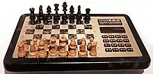Handheld electronics featuring speech synthesis began emerging in the 1970s. One of the first was the Telesensory Systems Inc. (TSI) Speech+ portable calculator for the blind in 1976.[19][20] Other devices had primarily educational purposes, such as the Speak & Spell toy produced by Texas Instruments in 1978.[21] Fidelity released a speaking version of its electronic chess computer in 1979.[22] The first video game to feature speech synthesis was the 1980 shoot 'em up arcade game, Stratovox (known in Japan as Speak & Rescue), from Sun Electronics.[23][24] The first personal computer game with speech synthesis was Manbiki Shoujo (Shoplifting Girl), released in 1980 for the PET 2001, for which the game's developer, Hiroshi Suzuki, developed a "zero cross" programming technique to produce a synthesized speech waveform.[25] Another early example, the arcade version of Berzerk, also dates from 1980. The Milton Bradley Company produced the first multi-player electronic game using voice synthesis, Milton, in the same year.