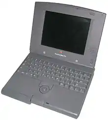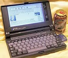 Another early model was the Hewlett-Packard OmniBook 300, which was launched as a "superportable" in 1993; it was one of the first examples to use a flash memory disk instead of a hard drive, to reduce the weight.[20]