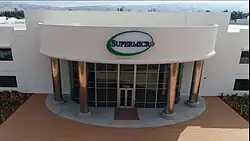 In September 2014, Supermicro moved its corporate headquarters to the former Mercury News headquarters in North San Jose, California, along Interstate 880, naming the campus Supermicro Green Computing Park. The main building was designed by Warren B. Heid in the modernist style, which was common for commercial buildings in the 1960s, and built by the Carl N. Swenson Company. During the time it served as the Mercury News's headquarters, the main building was expanded from 185,000-square-foot (17,200 m2) to 312,000 square feet (29,000 m2).[45] Until recently, a bronze sculpture, Chandelier by John Jagger, hung from the ceiling of an elliptical loggia at the entrance. The loggia is distinguished by a series of metal columns and the moat that surrounds it.[46][47] In 2017, the company completed a new 182,000 square-foot manufacturing building on the campus, which was designed to meet LEED gold certification.[48][49] The company expanded its San Jose campus in September 2021 with a manufacturing facility for advanced storage and server equipment. Supermicro was reported to have 2,400 people working in San Jose.[50]