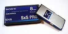 SxS (S-by-S) is a flash memory standard compliant to the Sony and SanDisk-created ExpressCard standard. According to Sandisk and Sony, the cards have transfer rates of 800 Mbit/s and burst transfer rate of up to 2.5 Gbit/s[1][2] over the ExpressCard's PCI Express interface. Sony uses these cards as the storage medium for their XDCAM EX line of professional video cameras.