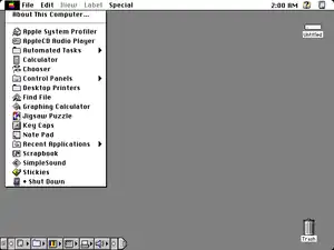 - A hierarchical Apple menu (folders within the Apple Menu Items folder would expand into submenus showing their contents. Again, based on a third party control panel; HAM by Microseeds publishing[19])