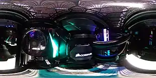 Historically, cases used CCFL lighting[18] and eventually single color LEDs as strips or in fans to illuminate their interior; modern cases use RGB LED lighting instead, often incorporated into case fans. To improve airflow while allowing RGB fans to be visible, many cases as of 2020 use metal meshes, without any external bays.[19] Many include a PSU shroud and vertical gpu mounts. Some used to include holes to support external water cooling radiators.[20][21][22][23][24][25] Cases with side windows may have side fans (on the window) as well, although it is uncommon for cases with glass windows to have side fans.[26]