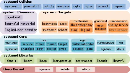 Beside its primary purpose of providing a Linux init system, the systemd suite can provide additional functionality, including the following components: