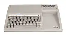 The TI-99/4 and TI-99/4A are home computers released by Texas Instruments in 1979 and 1981, respectively.[2] Based on Texas Instruments's own TMS9900 microprocessor originally used in minicomputers, the TI-99/4 was the first 16-bit home computer.[3] The associated TMS9918 video display controller provides color graphics and sprite support which were only comparable with those of the Atari 400 and 800 released a month after the TI-99/4. The TI-99 series also initially competed with the Apple II and TRS-80.[4]