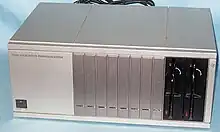 The TI-99/4A can be upgraded via expansion cards added to an eight-slot, external chassis containing its own linear power supply and a full-height 5¼" floppy bay.[13] Encased in silver plastic, but made from sheet steel, this is labeled as the Peripheral Expansion System by TI, but usually called the Peripheral Expansion Box or PEB. Each card has an LED that blinks or flickers when being accessed by software. The section of the power supply that powers the card slots is unregulated. Each card has on-board regulators for its own requirements, which reduces power consumption on a partially-loaded PEB, allowing for cards with unusual voltage requirements.