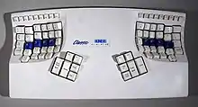 There exist special ergonomic keyboards designed for each typing method. The keyboard is split between the keys 5 and 6 or 6 and 7.